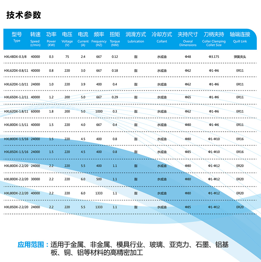 適用于金屬,非金屬,模具行業(yè),玻璃,亞力克,石墨,鋁基板,銅,鋁等材料的高精密加工